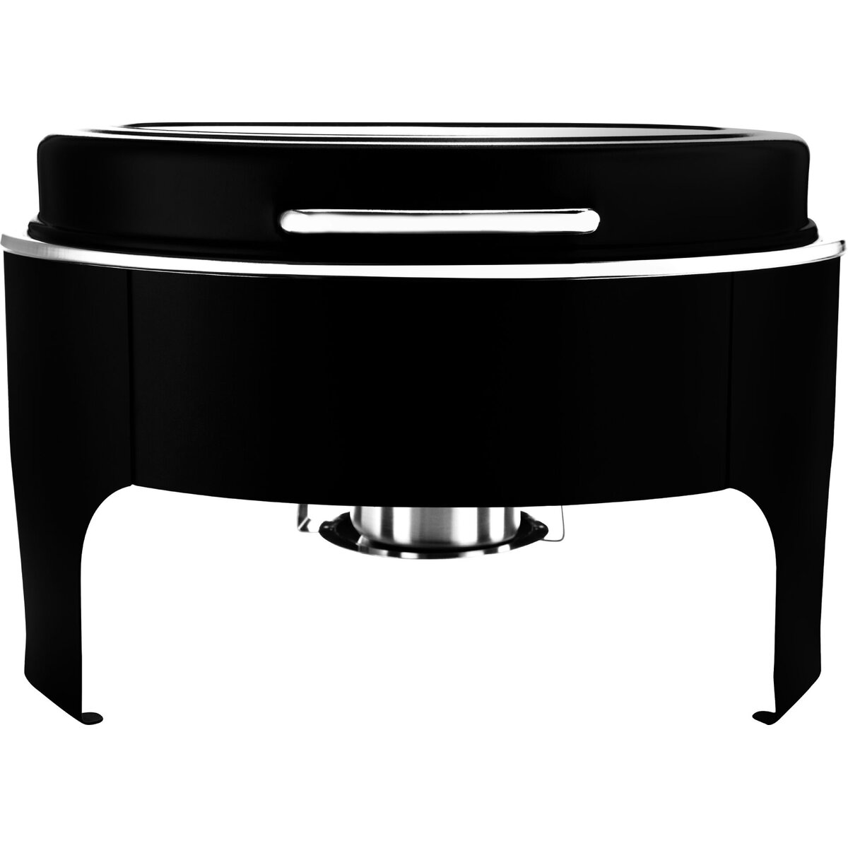 Gehäuse aus Edelstahl mit schwarzer Pulverbeschichtung. Soft Close Glasdeckel. Komplett mit Wasserbad und Speiseneinsatz (6L), mit 1 Brennstoffhalter.