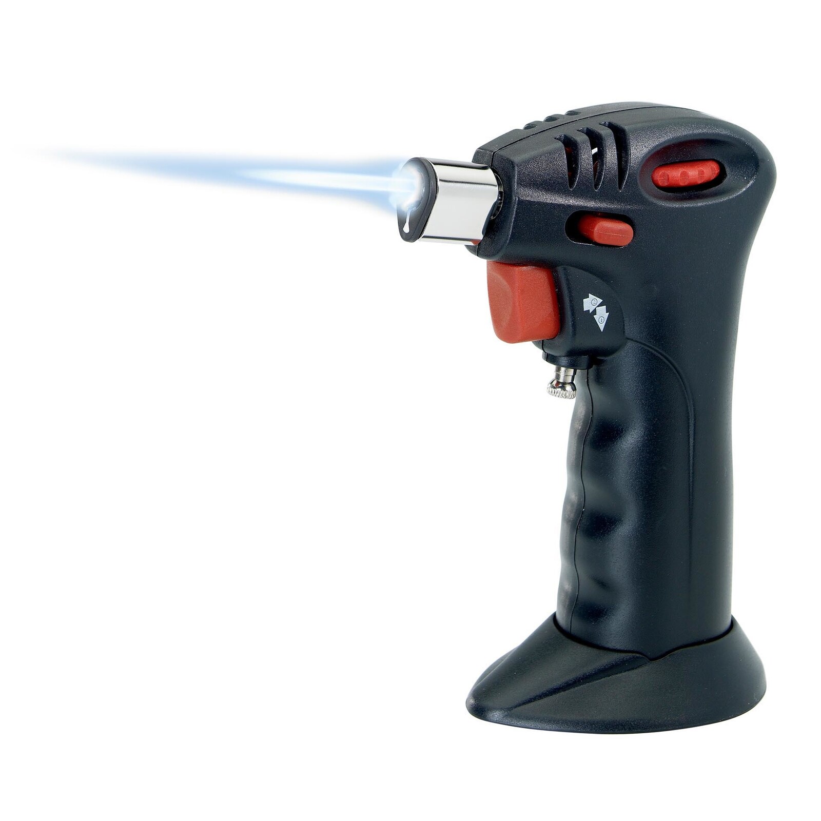 Kunststoff, Metall. Zum Karamelisieren, Gratinieren, Überkrusten und Bräunen. Größe der Flamme einstellbar. Einhandbedienung mit Kindersicherung. Nachfüllbar mit Butan-Feuerzeuggas. Gasfüllung nicht im Lieferumfang enthalten.