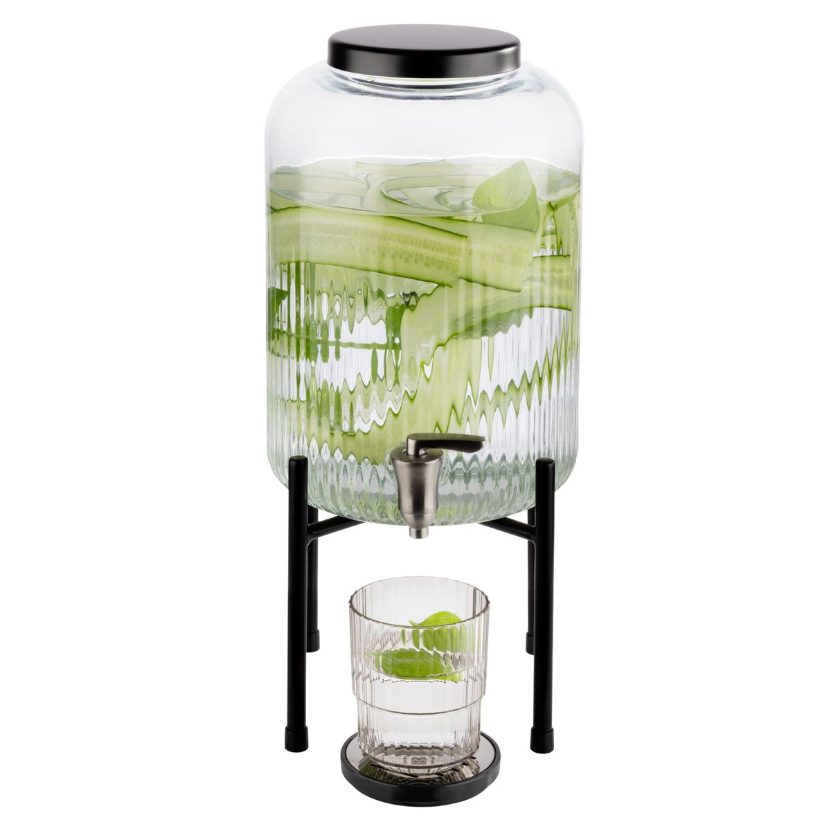 Getränkespender aus Glas inkl. Gestell aus Edelstahl (schwarz). Nicht spülmaschinengeeignet!