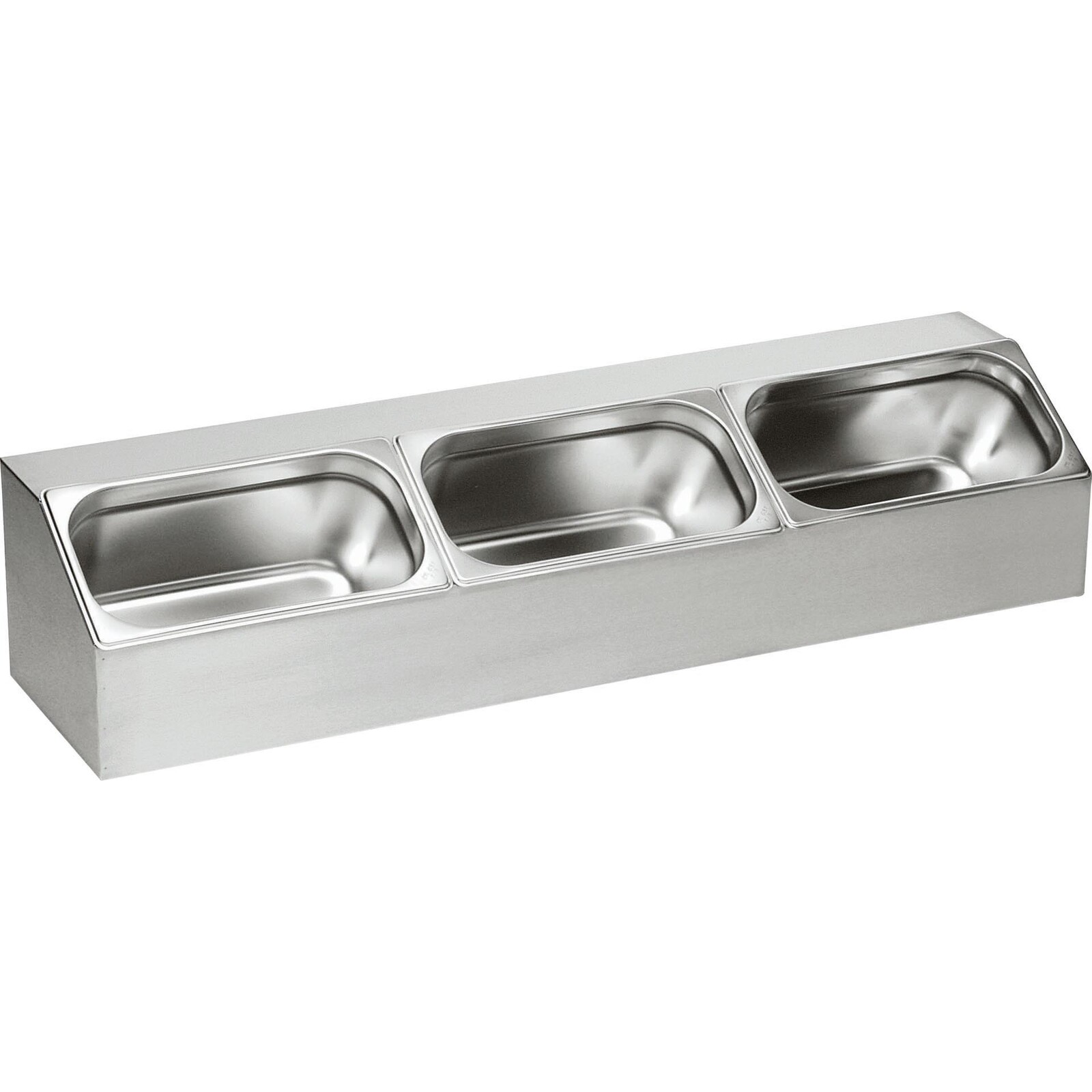 Edelstahl 18/10, gebürstet. Für 6x 1/6 GN oder 3x 1/3 GN bis 15 cm Tiefe. Lieferung erfolgt OHNE Behälter, bitte separat bestellen.