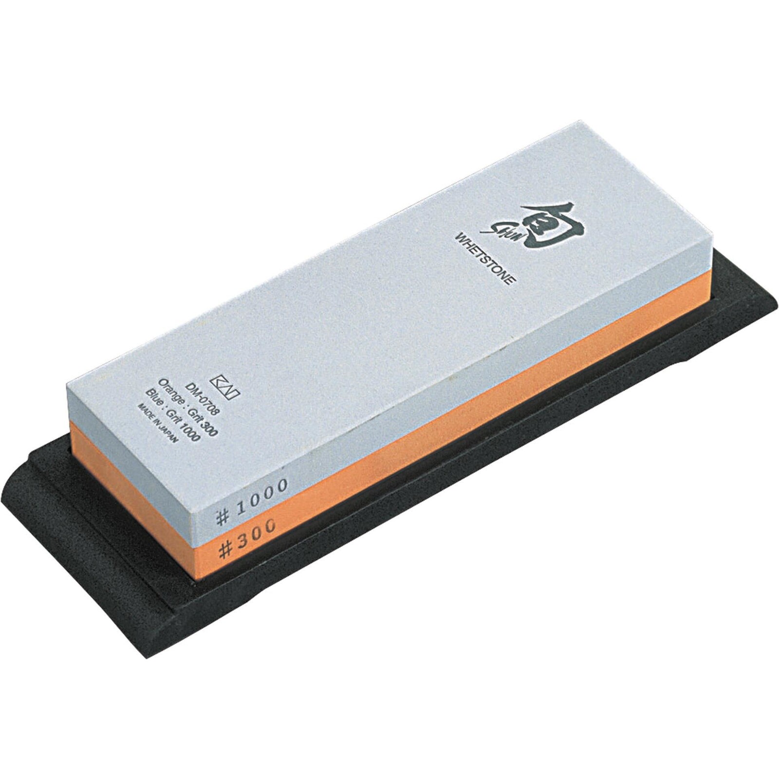 Mit zwei Seiten: Eine grobe Seite zum Herausschleifen von kleinen Macken, eine feine Seite um die Schneide wieder fein abzuziehen. Keramisch gebundener Schleifstein. Körnung: 300/1000, Gewicht in g: 719.