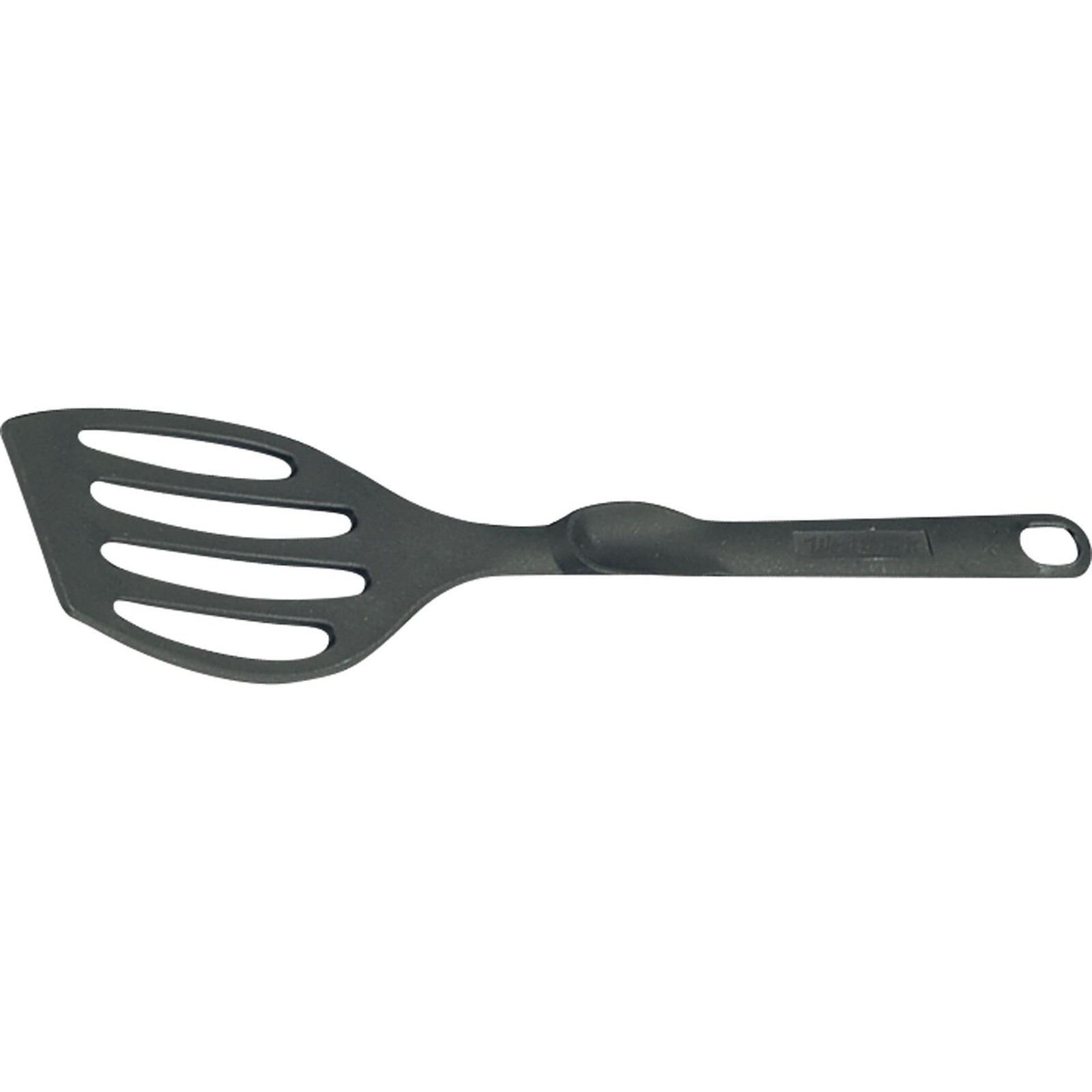 Polyamid, schwarz, hitzebeständig bis 210°C. Geschlitzt. Nicht in heißen Töpfen und Pfannen liegen lassen!