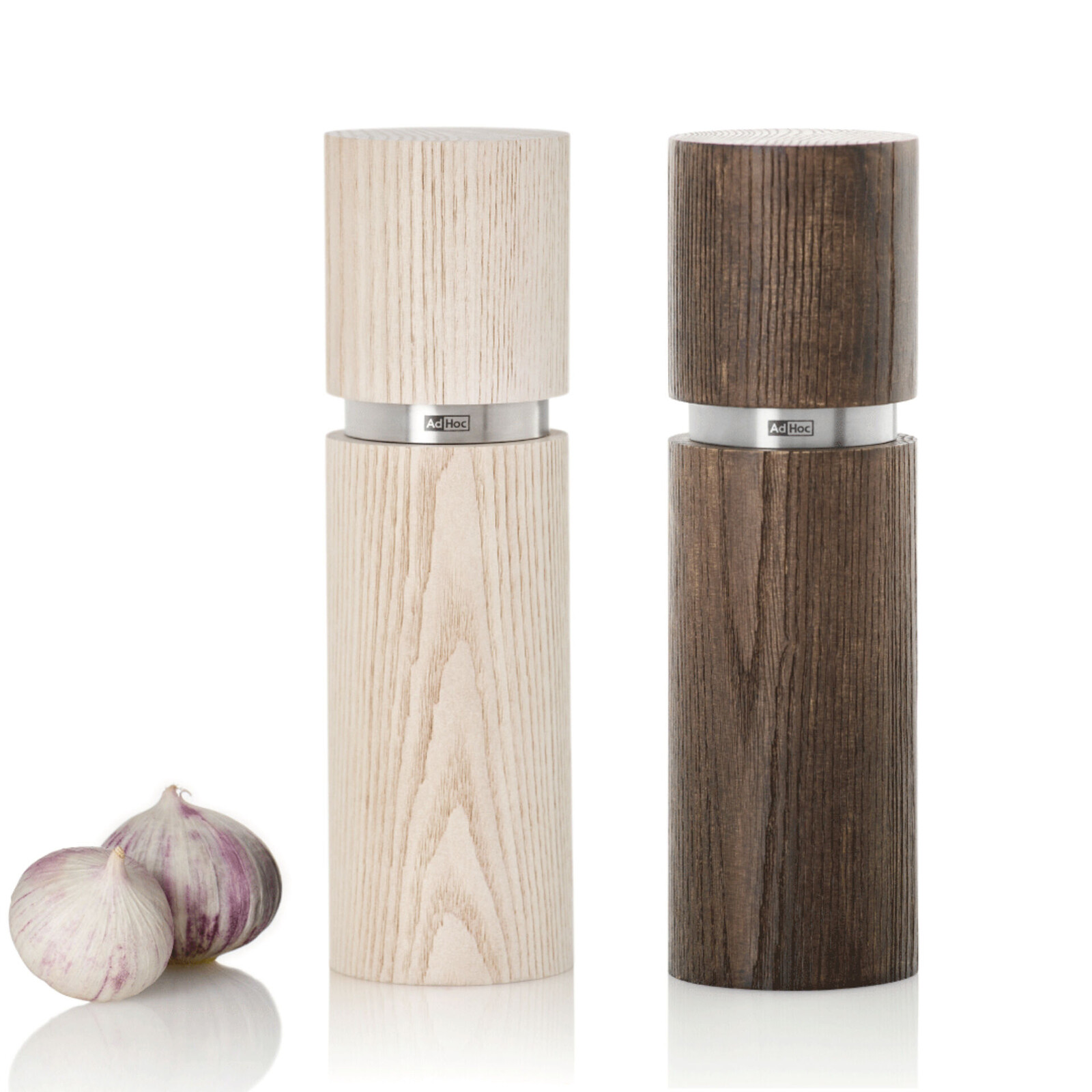 Eschenholz (antiquebraun und weiß)/Edelstahl. Rost-und verschleißfreies CeraCut® Hochleistungs-Ceramic Mahlwerk mit stufenloser Mahlgradeinstellung von pulverfein bis grob gemörsert. CAP-System für müheloses Befüllen der Mühle durch einfaches Abziehen des Oberteils.