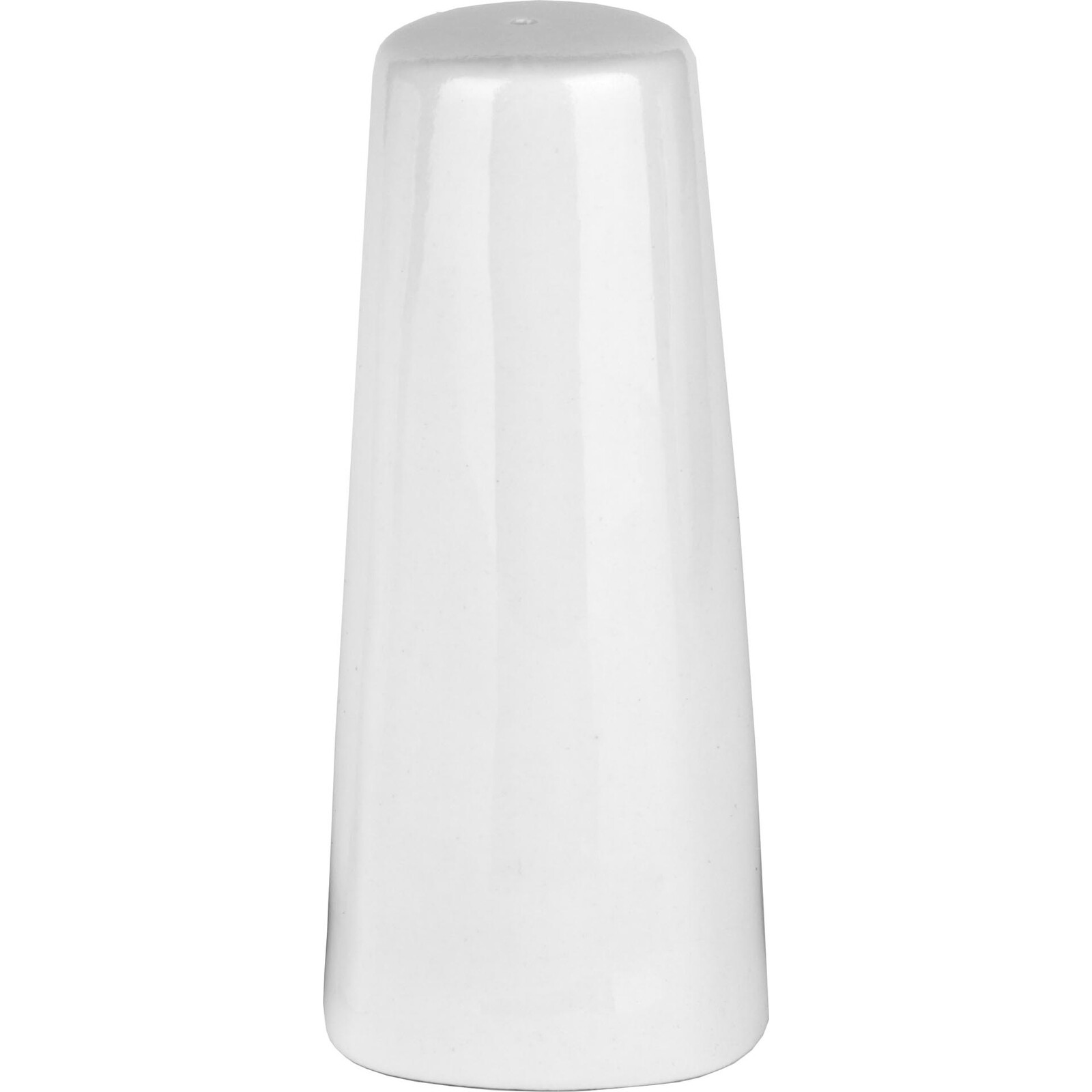 Streuer für Salz oder Pfeffer aus weißem Porzellan. ØxHöhe in cm: 4,3x10,3cm. Bohrungen: Ø2mm, 1x1 und 1x3.