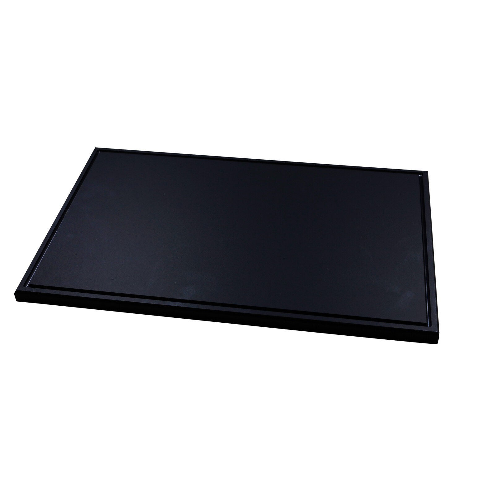 PE-Schneidbrett (Polyethylen) mit beidseitiger Fräsrille. Bis 80°C temperaturbeständig, darf beim Spülgang nicht geklemmt werden. Keine heißen Gefäße aufstellen, kann zum Verziehen führen.