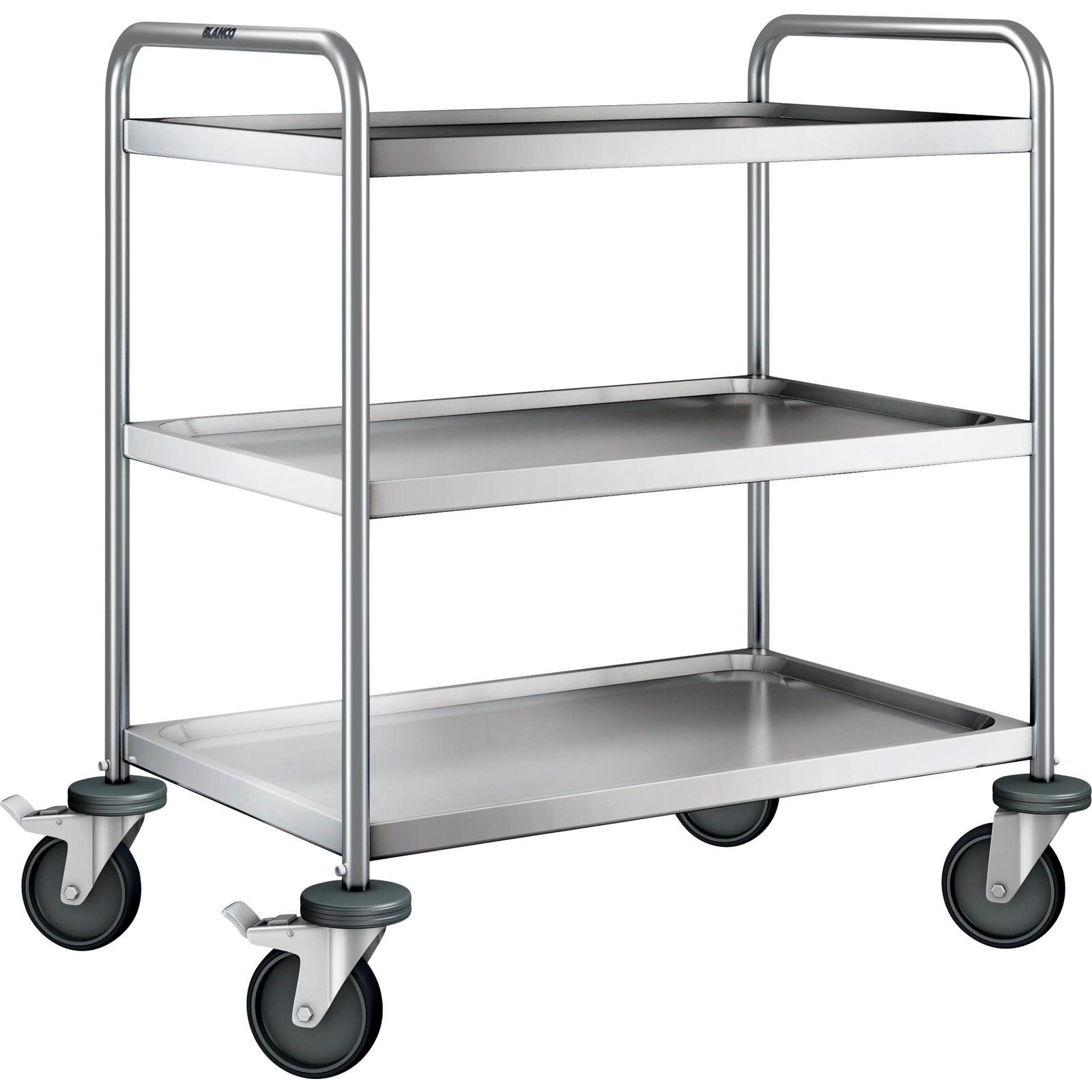 4 Lenkrollen, davon 2 mit Feststeller, stahlverzinkt. Wandabweiser aus Kunststoff (Polyamid). Bordmaß 80x50 cm. Tragfähigkeit 120 kg. Belastung pro Bord: 80 kg. Die Borde sind mit einer schalldämmenden Antidröhnmatte unterfüttert. Besonders stabil, da fest verschweißt. Wird fertig montiert geliefert.